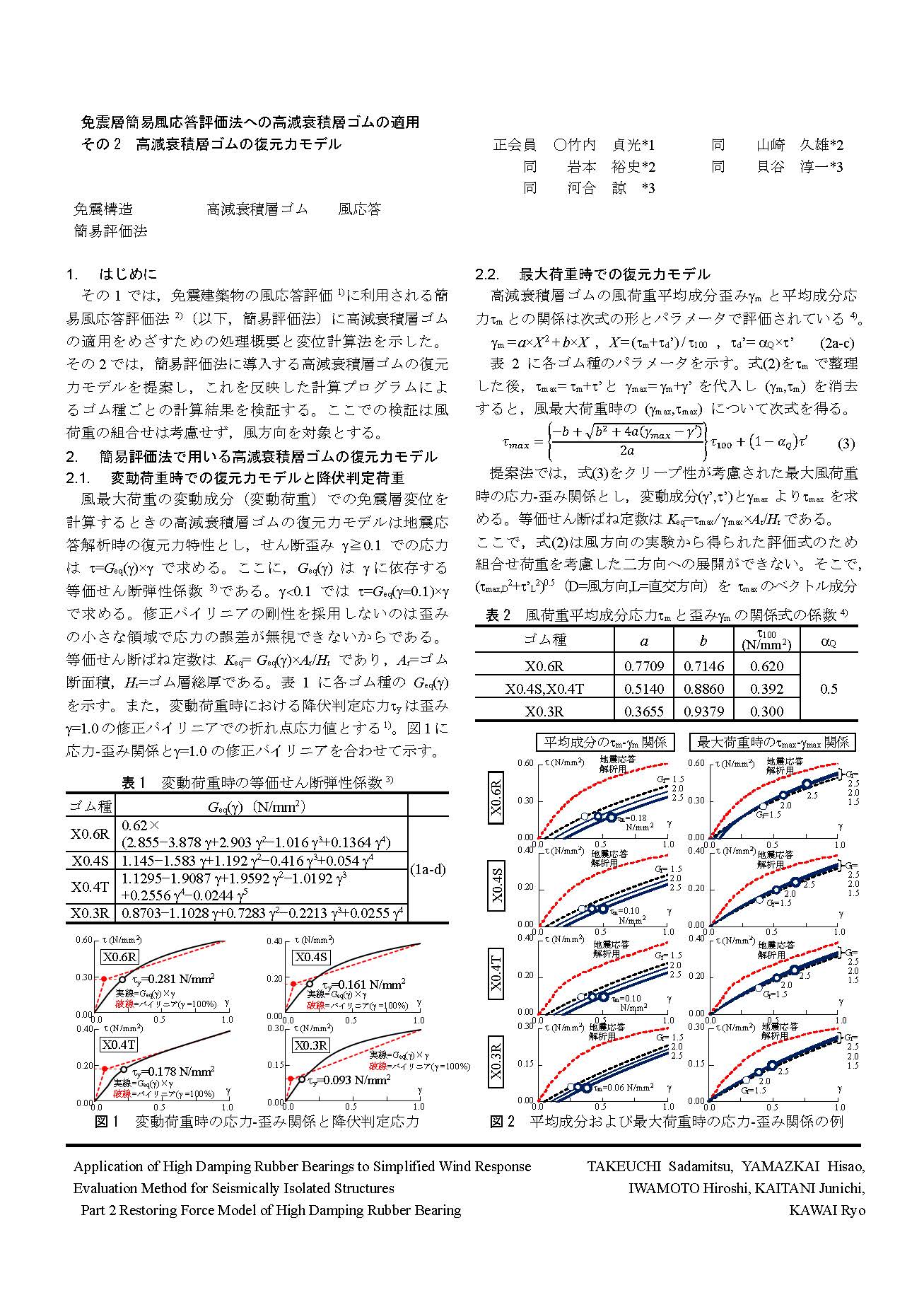 免震層簡易風応答評価法への高減衰積層ゴムの適用(その1〜3)」
